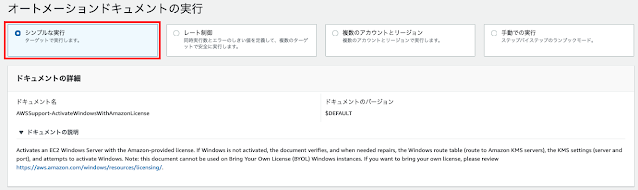まず、AWS System Managerコンソールを開いて、左の欄から「自動化」を選択します。