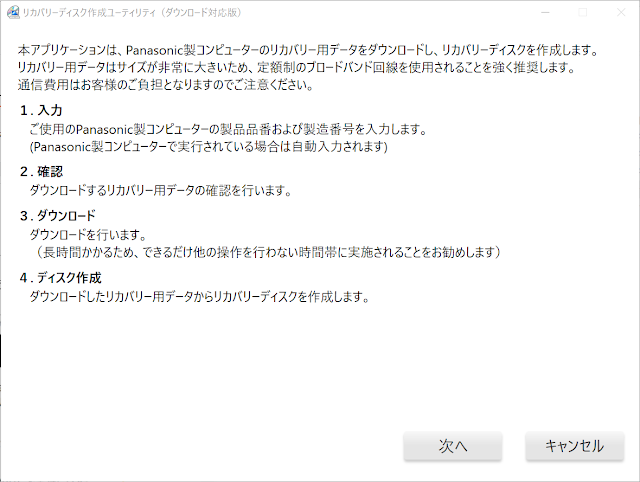 Windows 10 リカバリーイメージ ダウンロードサービス | パナソニック パソコンサポート (panasonic.co.jp)