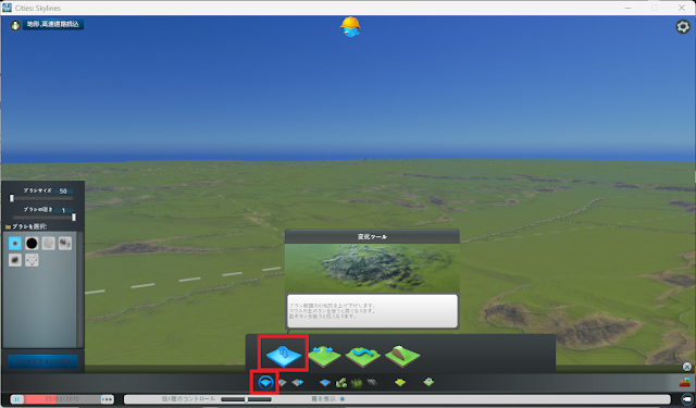 「地形ツール」の「変化ツール」を選択します。だんだん説明が雑になってきたかもしれない。